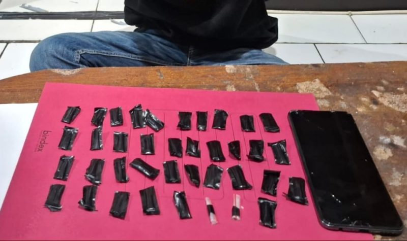 Barang bukti tersebut ditemukan dalam bungkus rokok bekas yang disembunyikan di saku jaket hitamnya. Terduga pelaku mengaku sabu itu diperoleh dari seseorang berinisial O (DPO) untuk diedarkan di kawasan Benteng dan Jalur Cemerlang, Kecamatan Warudoyong.