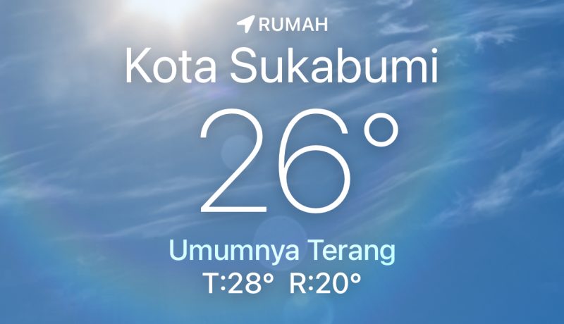 Cuaca di Kota Sukabumi potensi cerah berawan di pagi hari dan hujan pada siang hari, lalu langit potensi berawan di malam hari dan cerah berawan di dini hari.