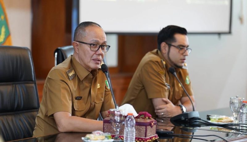 LITERASI MEDIA – Wali Kota Sukabumi Ayep Zaki, didampingi Wakil Wali Kota Bobby Maulana, memberikan pengarahan kepada pejabat Eselon 4 dan Jabatan Fungsional dari sejumlah perangkat daerah, pada Senin (11/8).
